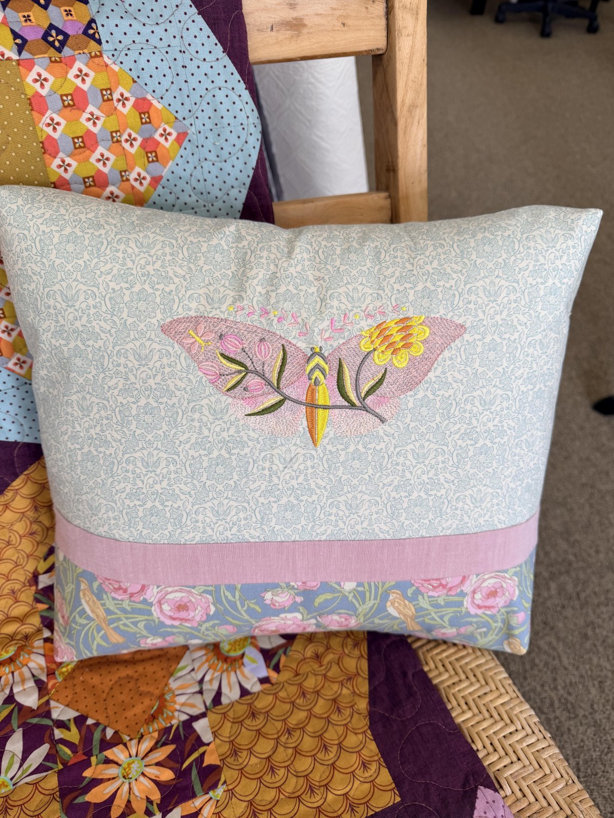 Embroidery design can be purchased at Https://oesd.com/delightbutterfly Scissortail Stitches #90005-05 $3.99